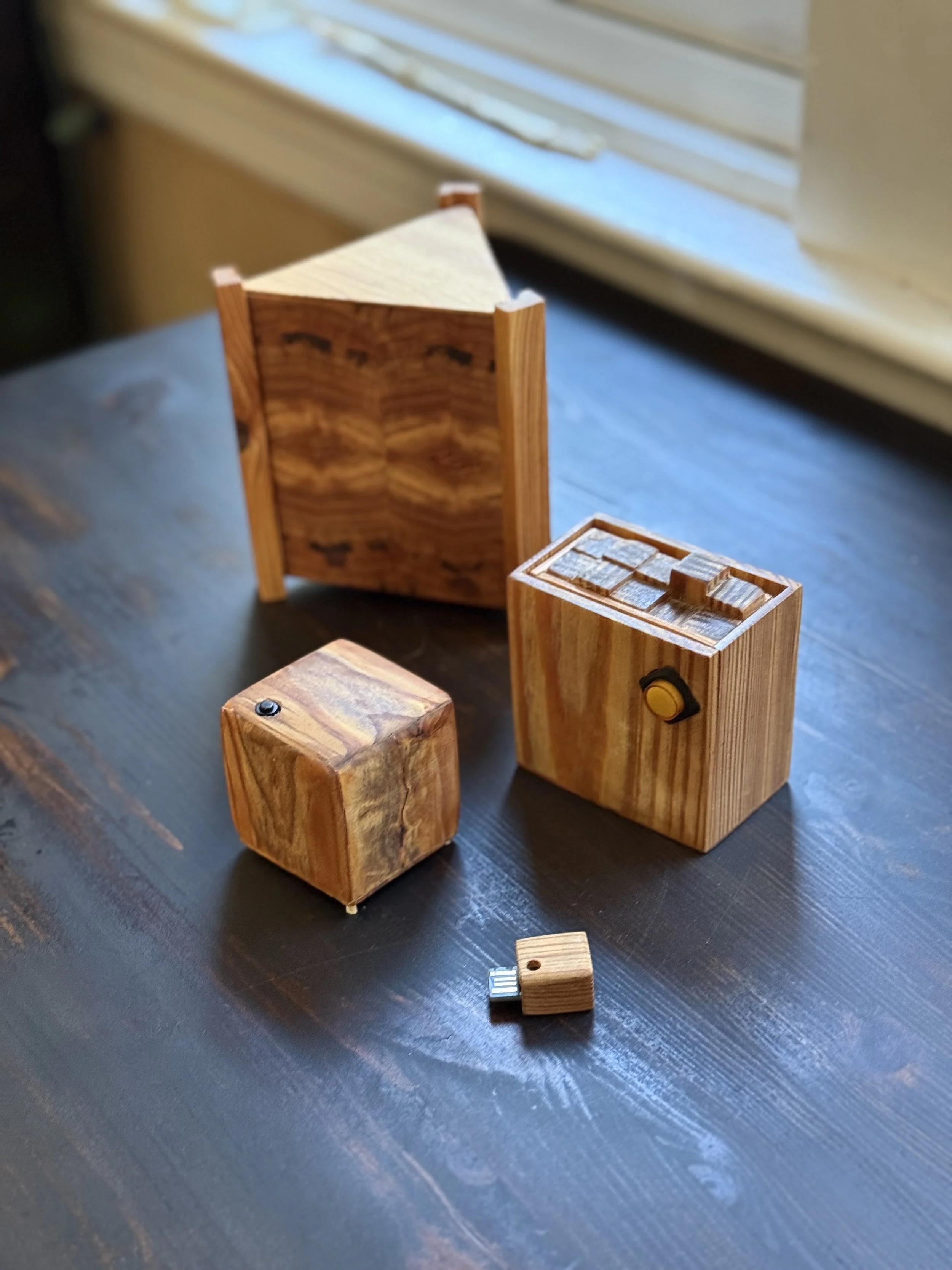 Please note: These chargers come in two styles: some feature a custom made wooden case by the artist, while others arrive in their original Adafruit housing*. Both function the same and are small in size.