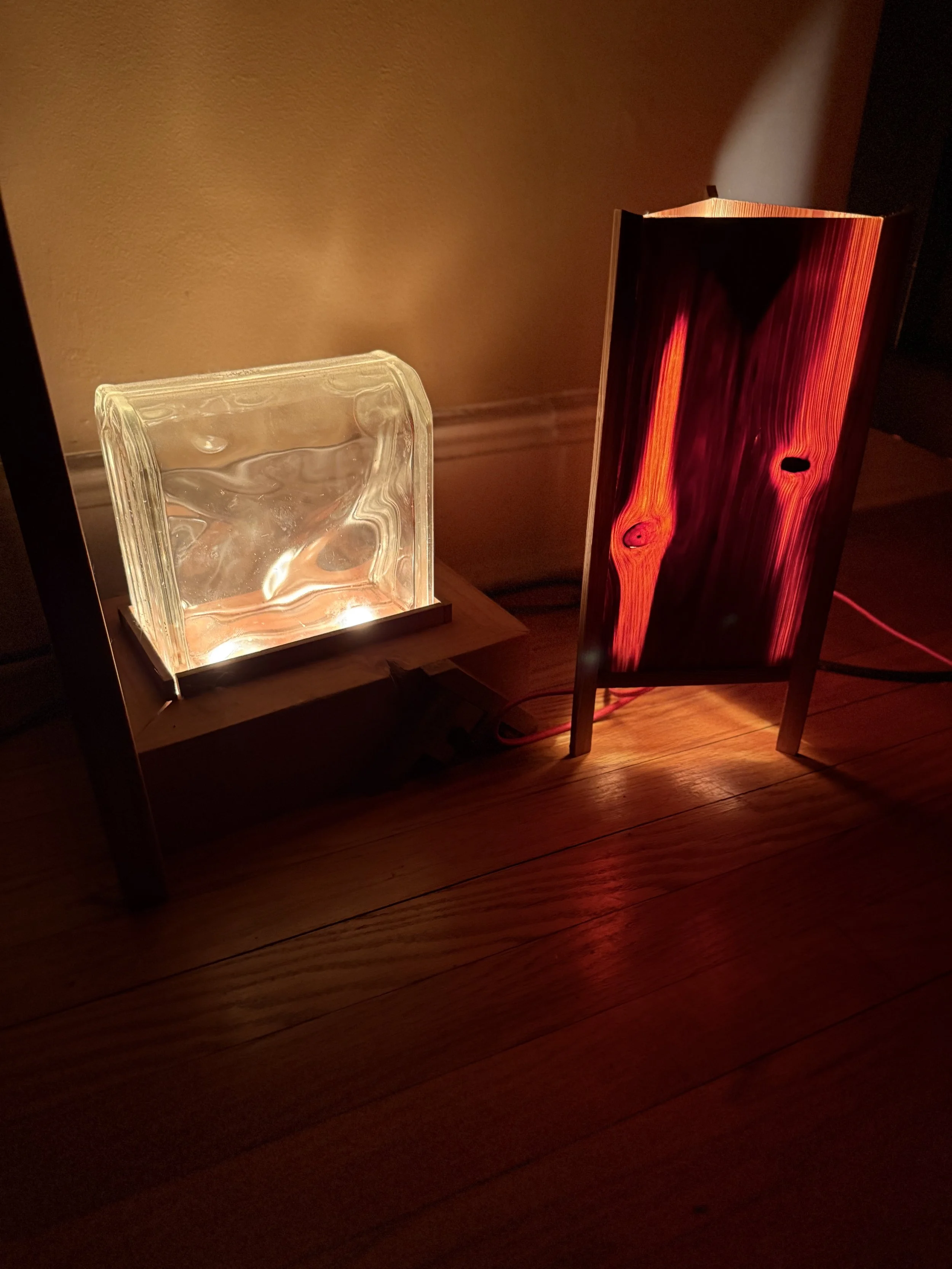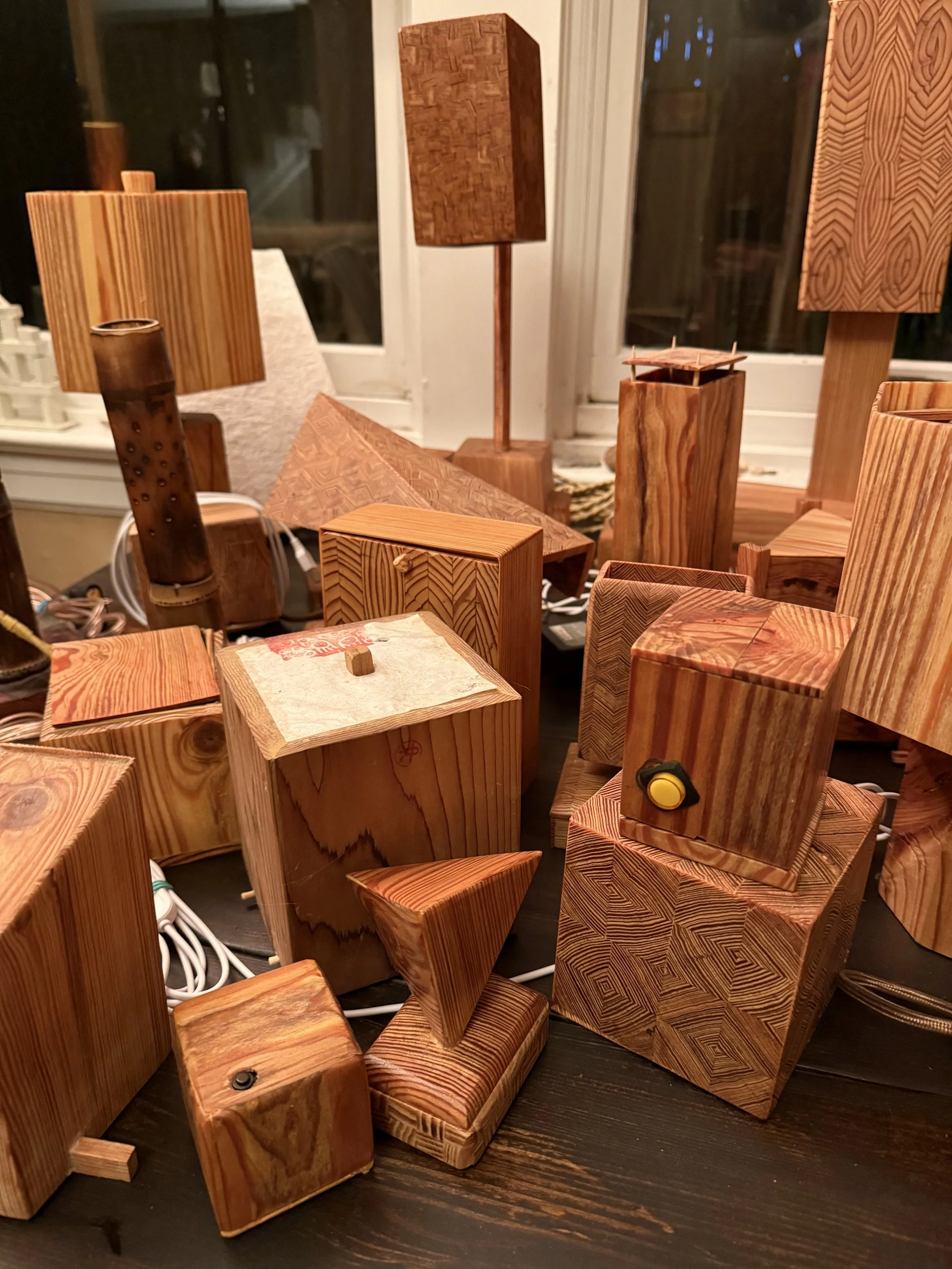 What interests me is not illumination in the practical sense. It’s not about making a lamp to light a room. It’s about how light moves through a form, how it reveals grain, edges, layers, shadow. Light is another material. It has color, temperature, intensity, diffusion. It can be quiet or it can be sharp. It can breathe.